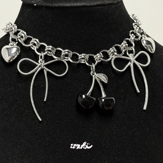 Cherry & Rosette Chainmail Necklace (pre-order)